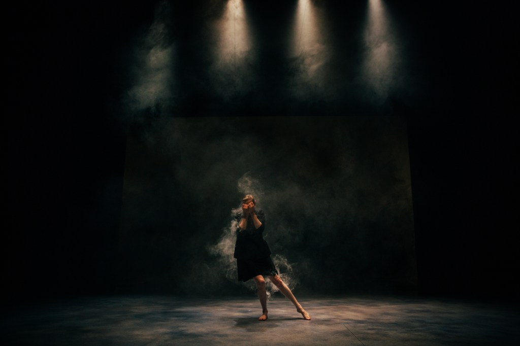 De voorstelling begint en eindigt met een prachtig beeld van een gewichtloos lijkende Michèle Anne de Mey die over het toneel zweeft. Tenzij hier sprake was van een perfect hologram is dit ‘live’ uitgevoerd, vermoedelijk met over het toneel gespannen plastic banen die zo onzichtbaar mogelijk zijn gemaakt. Niet te lang stilstaan bij hoe ze het doen, het beeld is indrukwekkend. Een voice-over legt een paar hypotheses over bijna-dood ervaringen. In volgende scènes bevindt de protagonist zich in mystieke berglandschappen en zeebeelden, en op den duur vaak, terugkerend op aarde, op kale bedden en stoelen in lege kamers; het ziekenhuis waar De Mey heen is gebracht, neem ik aan.