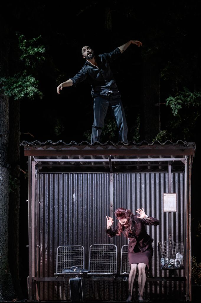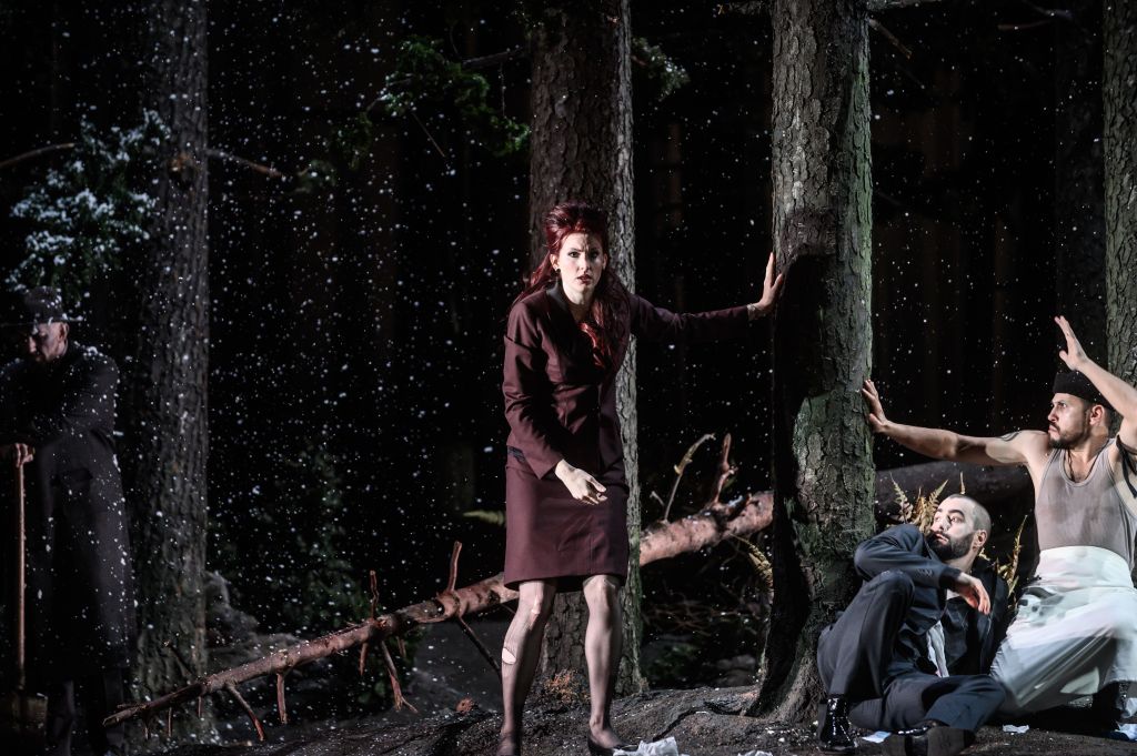 Het decor is een nachtelijk bos, een halve wildernis; ik waande mij even diep in de bossen bij Lage Vuursche waar het Holland Festival ons onlangs heenbracht in de voorstelling ‘Dans la Forêt’. Maar waar het in ‘Dans la Forêt’ ging om de beleving van de stilte, gedragen de personages zich in deze voorstelling voortdurend bij de beesten af; ‘The Hunger Games’ in opera.