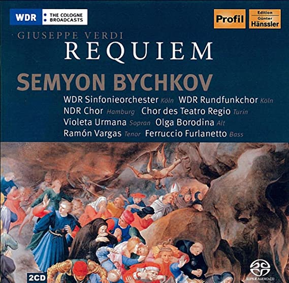 Semyon Bychkov is een man van de lange adem: hij articuleert breed en neem rustig de tijd voor. Toch doet hij er ruim acht minuten korter over dan mijn ‘ijkpunten’, Claudio Abbado en Carlo Maria Giulini. Op zijn mooist is hij als hij de noten vloeiend in elkaar laat overlopen, zoals in ‘Lacrimosa’, in een waarlijk belcanteske stijl. Ontroerend.