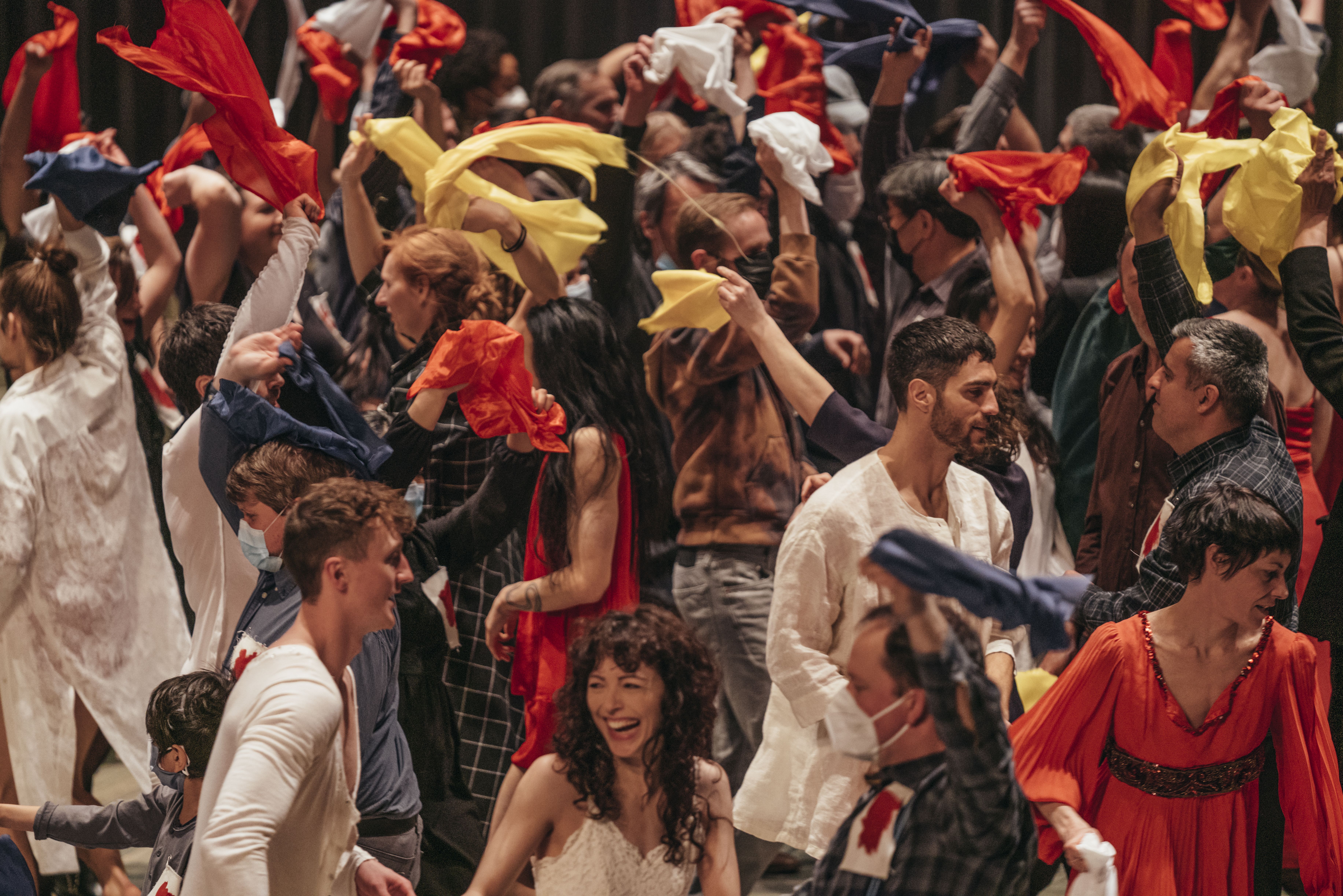 In 2012 had de betreurde Gerard Mortier de artistieke leiding over het Teatro Real van Madrid. Wie ‘s mans parcours gevolgd heeft – en welke operaliefhebber heeft dat niet? – weet dat Mortier nooit voor een experiment opzij ging. Zo vroeg hij toen aan zijn mede-Gentenaar Alain Platel een voorstelling te maken op basis van koren uit opera’s van Giuseppe Verdi. Het waren de dagen van de Arabische lente, waarin de ene dictatuur na de andere door een volksopstand omvergekegeld werd, en dat vroeg om bezinning op het fenomeen ‘massa’.