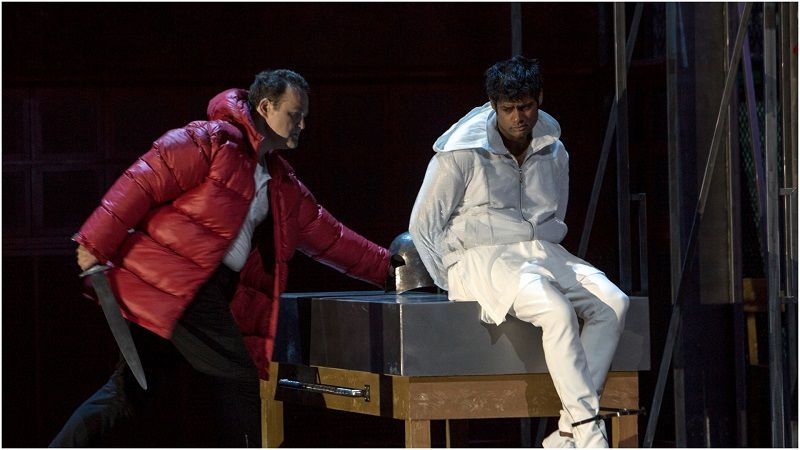 Russel Braun (Penthée) et Sean Panikkar (Dionysos) – Photo Bernd Uhlig