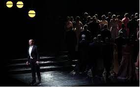 Ik heb iets dergelijks met de regie die Michael Geliot in het midden van de jaren zeventig van deze opera op de planken bracht bij de toenmalige Nederlandse Operastichting. Het was een prachtige, zorgvuldig gedetailleerde enscenering in een voornamelijk zwart-wit decor, een van de meest liefdevolle en precieze die ik in mijn leven mocht zien – en het is ook een regie die mij bij het waarderen van andere producties van deze opera juist daarom altijd in de weg is blijven staan. Hoewel de twee grote balscènes uitbundig waren zoals het hoort, was men toch vooral getuige van een intiem drama tussen twee betrekkelijk jonge mensen die onhandig met hun gevoelens omgingen. Van de reprise in november 1982 herinner ik me dat Linda Esther Gray en Benjamin Luxon, die de hoofdrollen voor hun rekening namen, onder het slotapplaus beiden in tranen waren, nog volledig in de ban van hun rollen en de tragische ontknoping.