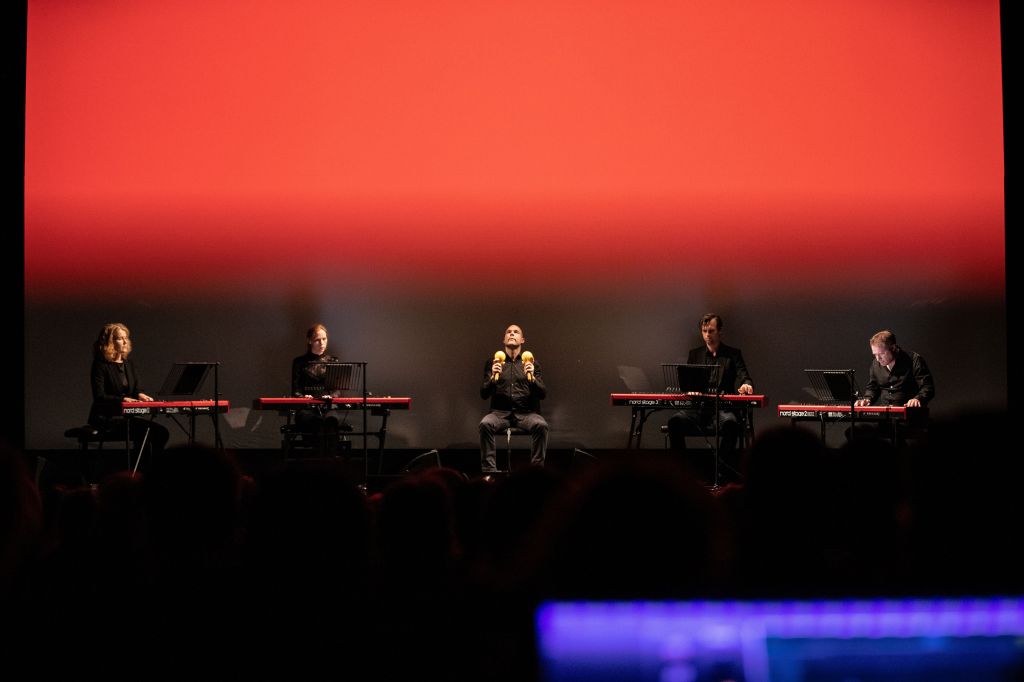 En vanwege die noodzaak heel goed te moeten tellen was het niet zo’n wonder dat de artistiek leider van het concert Colin Currie nu achter één van de synthesizers zat en vandaaruit de uitvoering leidde. Al die precisie levert een adembenemende spanningsboog op, anders zou deze muziek op den duur ook geschikt zijn voor een geheime dienst om er bekentenissen mee af te dwingen.