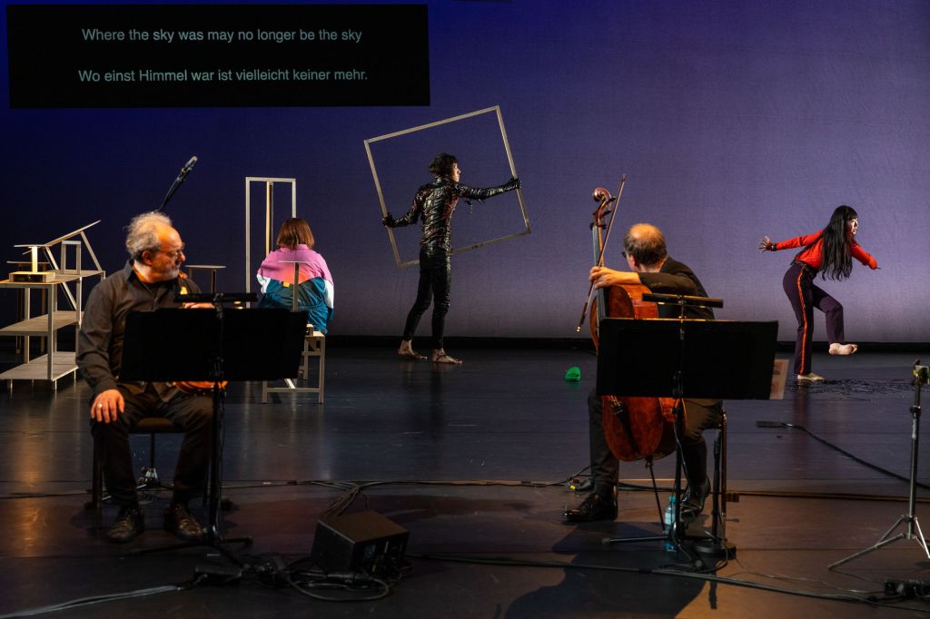 Maar het deed ook erg denken aan ‘experimenteel theater’ van de jaren tachtig. En afgezien van de instrumentale perfectie die het Weense muziekensemble Klangforum aan de dag legt, voegde de uit ijle klankblokken bestaande muziek ook niets nieuws toe. Echt, je kunt in alle programmaboeken en overige toelichtingen eindeloos schrijven dat deze samenwerking allemaal nieuw is, maar daar wordt het niet nieuwer van.