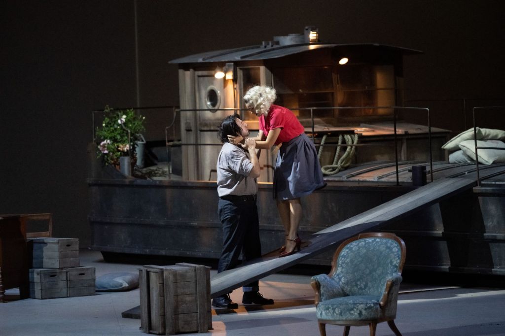 Asmik Grigorian is uitstekend op dreef als de gefrustreerde Giorgetta, die haar man Michele niet echt iets verwijt, maar gewoon wil toegeven aan het verlangen naar een gepassioneerde liefdesrelatie, en wel met iemand van haar leeftijd en beslist ook niet op een schip. Haar duet met Luigi, vertolkt door een van haar favoriete tegenspelers Joshua Guerrero, komt nogal afstandelijk over. Ze houden veel afstand, maar dat zal vooral uit angst zijn dat Michele hen zo samen ziet.