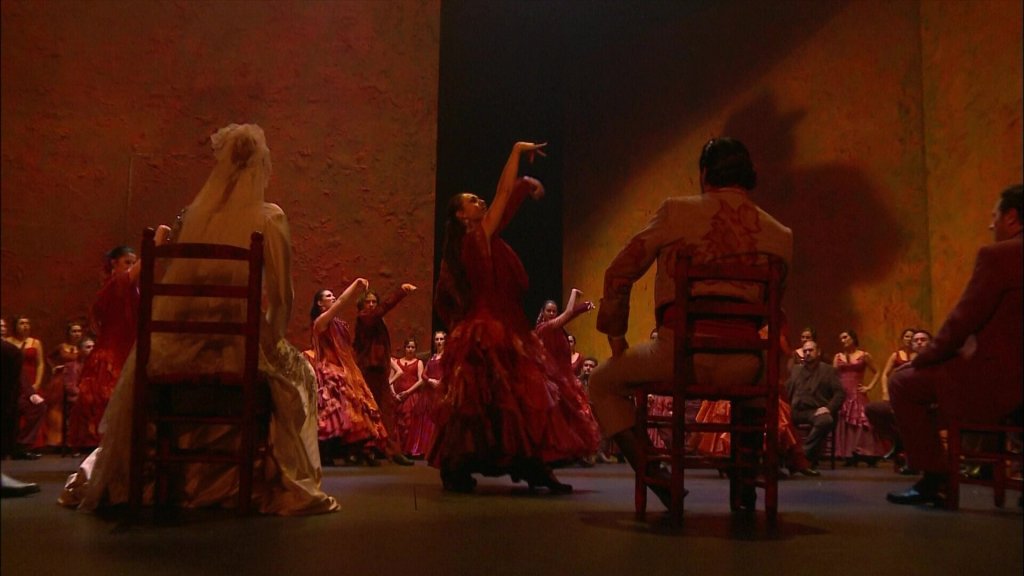 In diezelfde ruimte, nu wat neutraler belicht, vindt de bruiloft plaats. Een zigeunerin zingt een flamenco en wordt gedanst. Alles lijkt goed te gaan tot Salud arriveert. Met voor haar fatale afloop.