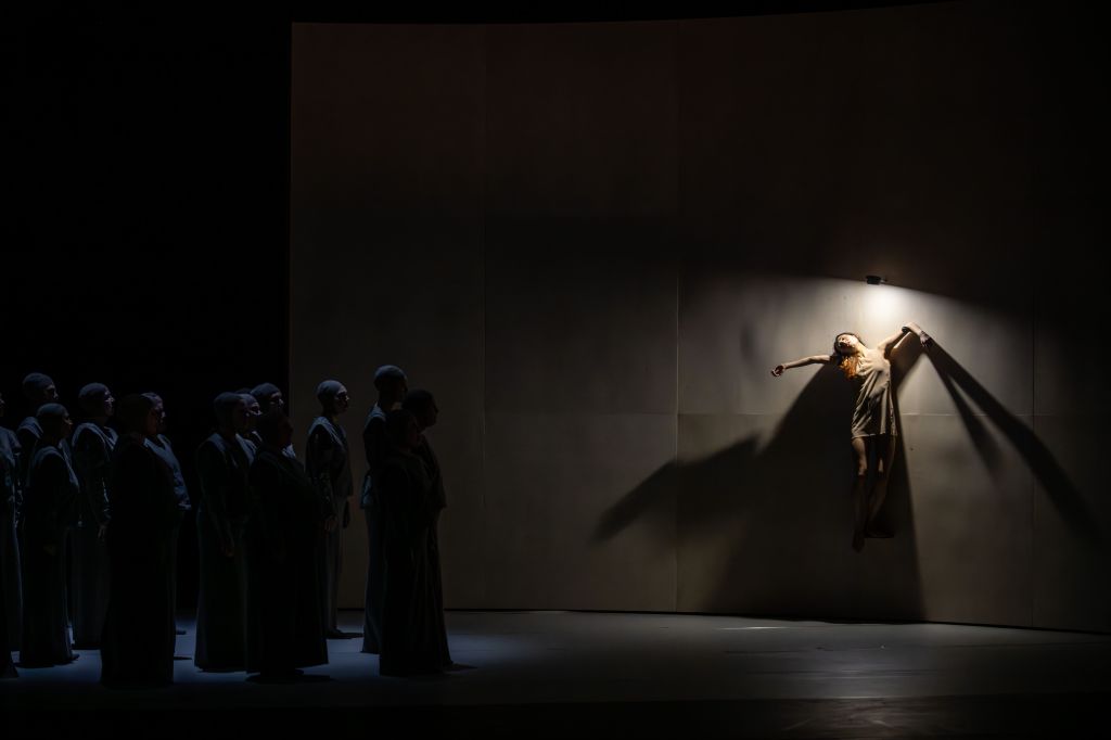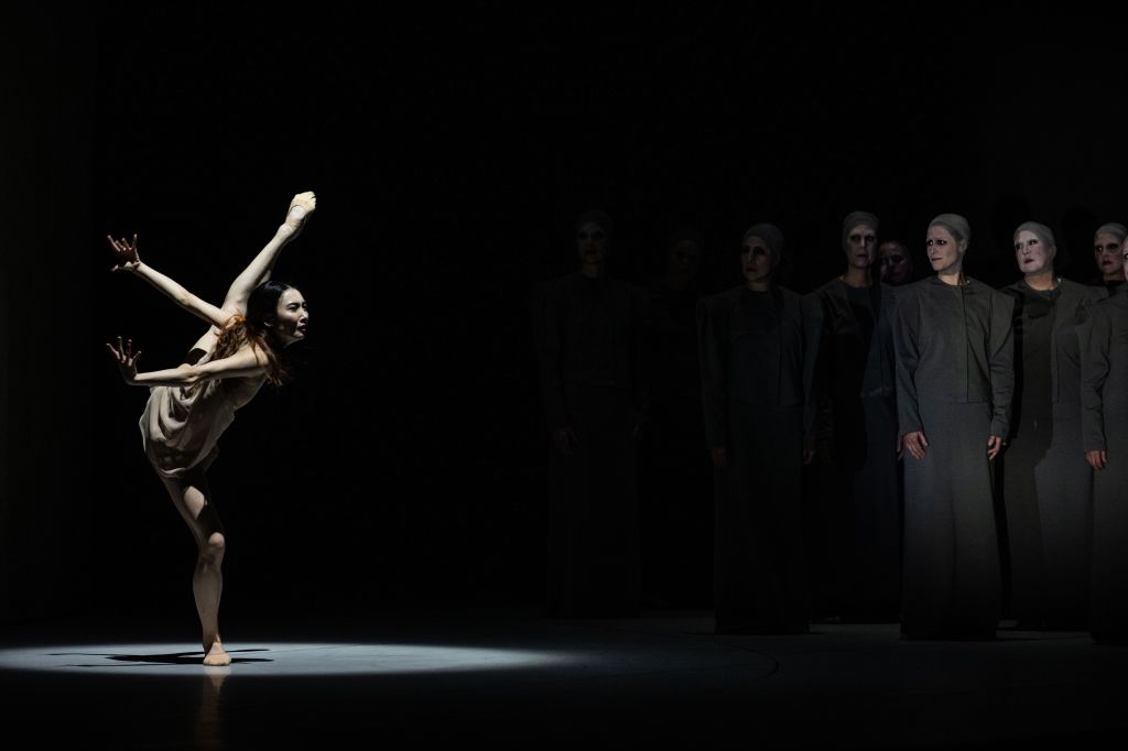 In dit balletoratorium is er vocaal alleen rol voor het vrouwenkoor. Dat kreeg van Nanine Linning een fraai gechoreografeerde hoofdrol. En zong weergaloos, messcherp in de fraaie harmonieën.