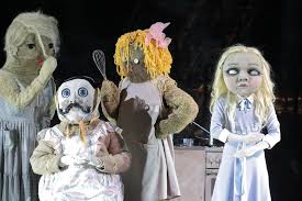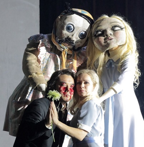 De poppen Parasha en Vassili kunnen dat niet aanzien en zetten hun koppen af. Ze wisselen als het ware van rol met die twee zielenpoten die nu op hun beurt tot poppen worden gereduceerd. Zo wordt het eind van zijn scherpe kant ontdaan, poppen kan je nu eenmaal niet blind maken door ze te verminken.