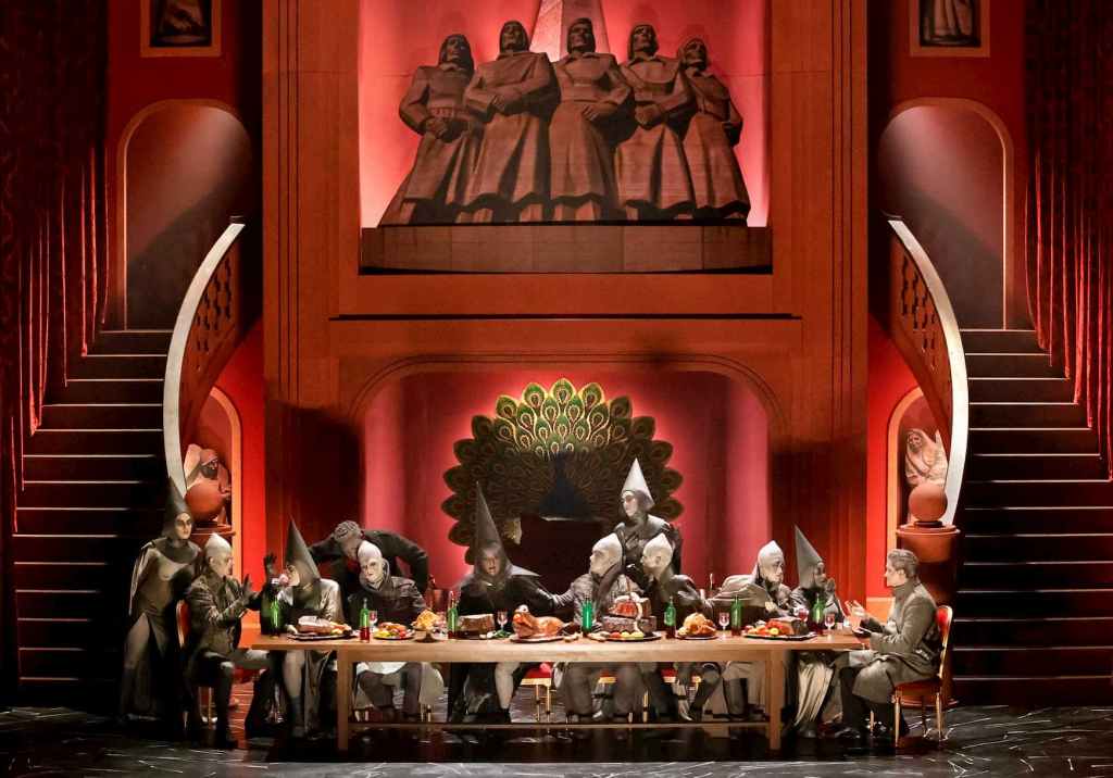 In zijn eerdere productie voor Vlaanderen, Der Schmied von Gent, maakte hij gebruik van een groot draaitoneel dat in een oogwenk twee verschillende werelden kon tonen. Datzelfde draaitoneel toont nu het paleis van een decadent potentaatje in een post socialistische samenleving. De ene kant laat enorme beelden zien in socialistisch realistische stijl tegen een brutalistisch bouwwerk met een paar anachronistische middeleeuwse kantelen.