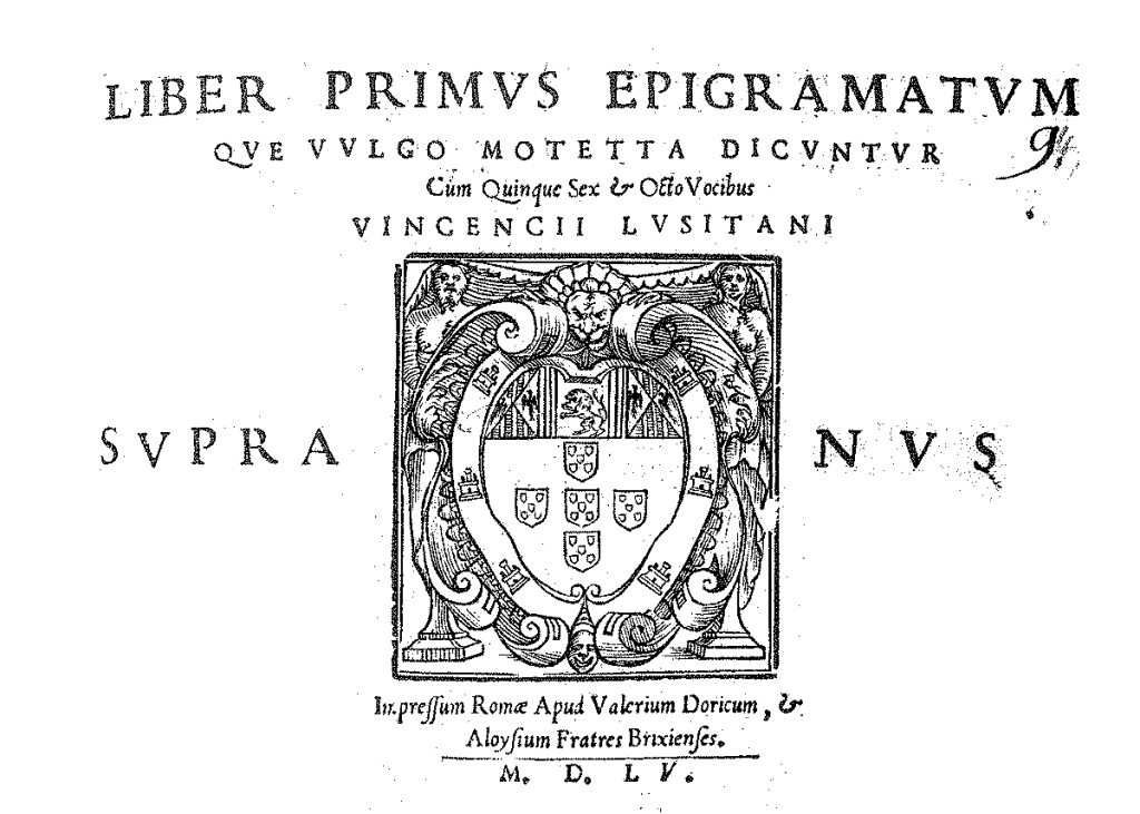 Van zijn composities zijn alleen een aantal motetten bewaard gebleven in het in Rome in 1551 gedrukte Liber primus epigramatum plus een losstaand motet Heu me Domine als onderdeel van een theoretische verhandeling, waarover verderop meer, maar dat zijn tot nu toe bekendste werk is geworden. Op de titelpagina van dat Liber primus epigramatum staat als naam Vincencii Lvsitani, ‘van Vincent de Portugees’. Vandaar Lusitano. In Rome was de aanduiding ‘de Portugees’ een stuk specifieker.