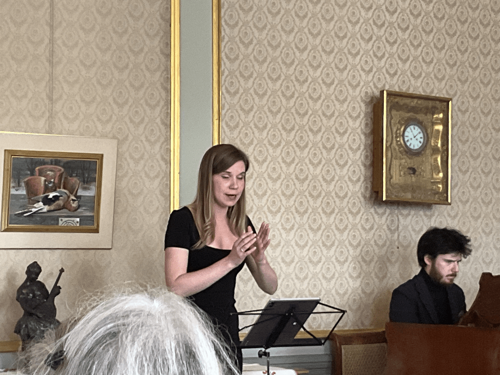 De eerste drie liederen van deze middag klonken de vorige keer ook. “Lead, kindly light” uit 1945 op tekst van de Engelse kardinaal Newman is geschreven voor Jo Vincent, die het in de orkestversie zong met het Concertgebouworkest onder Adrian Boult. Newman had ook de tekst voor Elgar’s The Dream of Gerontius geschreven. Bosmans was in die jaren bevriend met Britten. Het lied werd nu uitgevoerd in de versie voor piano, maar met een fraaie extra toegevoegde vioolpartij (bewerking Elizaveta Agrafenina), gespeeld door Sarah Bayens.