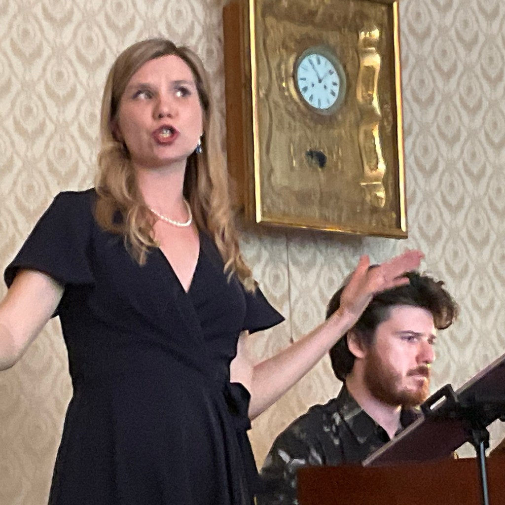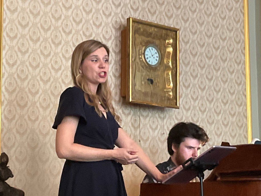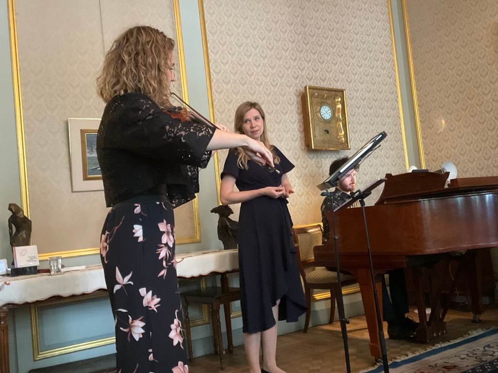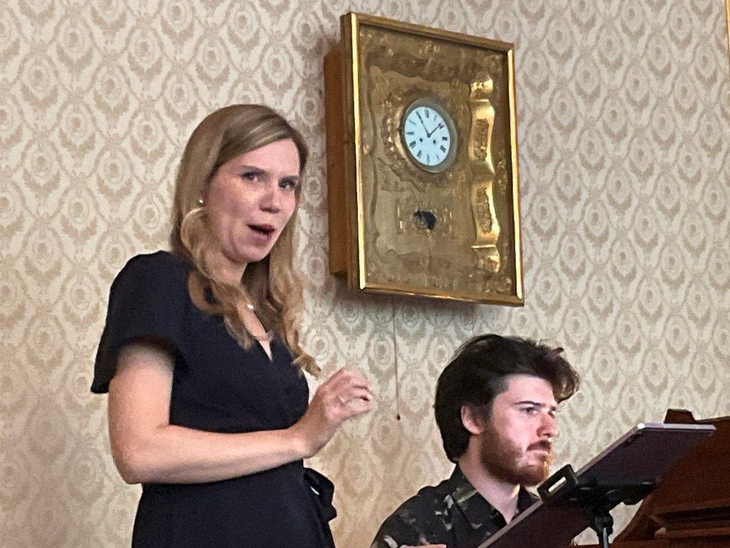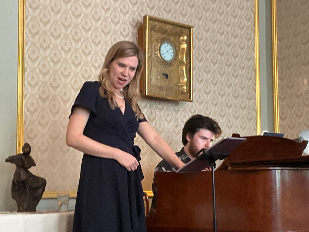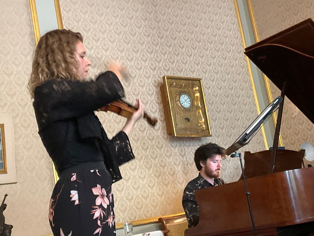 Na een fraaie uitvoering door Sarah Bayens en Dimitri Malignan van Bosmans’ vioolsonate voegde Elizeveta Agrafenina zich voor de laatste keer bij hen voor “Gebed” uit 1945, van dezelfde tekstdichter als van “Daar komen de Canadezen”, Fedde Schurer, en een meditatiever oorlogslied: ‘Heer, zegen Gij ons dierbaar vaderland