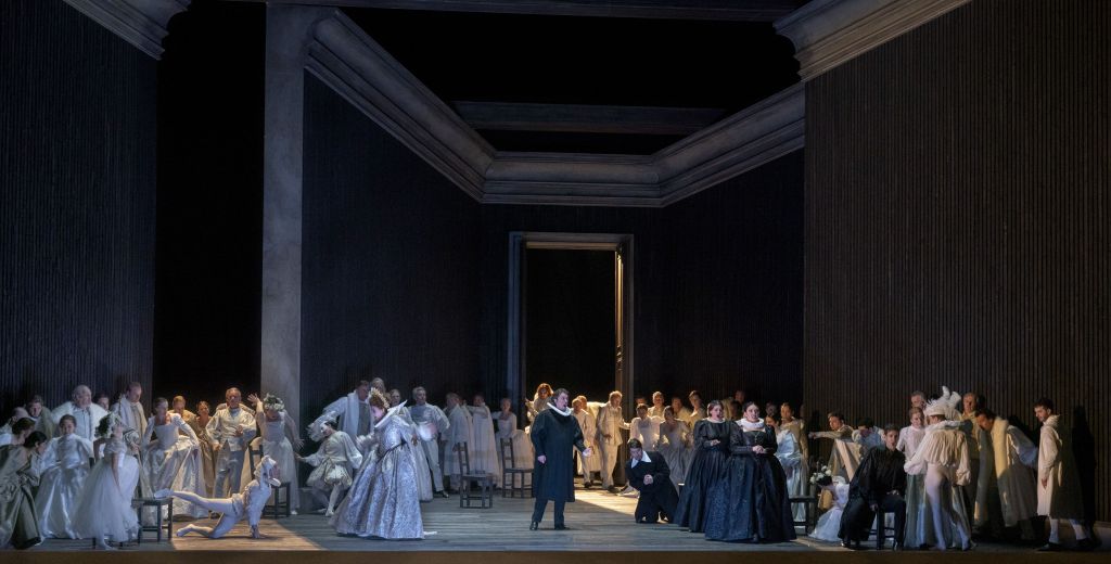 Het orkest (Britten Sinfonia) en het uitstekend zingende Opera Rara koor staat onder de bezielende begeleiding van Carlo Rizzi, die in Amsterdam natuurlijk een graag geziene gast was. Het is jammer dat hij niet meer in de picture lijkt bij DNO.