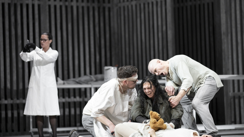 In de bak zit de Wiener Plhilharmoniker. Op het toneel zien we de heren van het Wiener Staatsopernchor en dirigent Mirga Graźinytè-Tyla heeft de muzikale leiding.