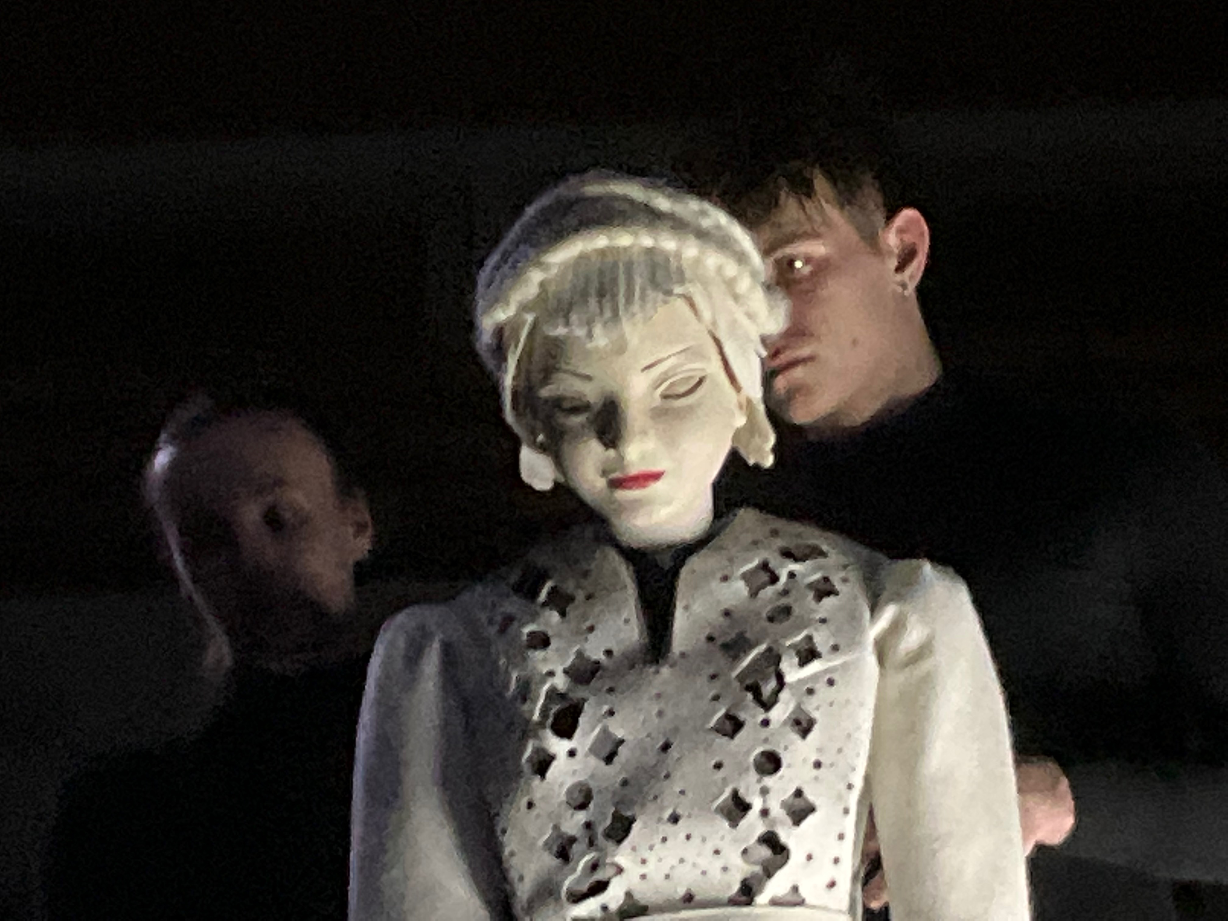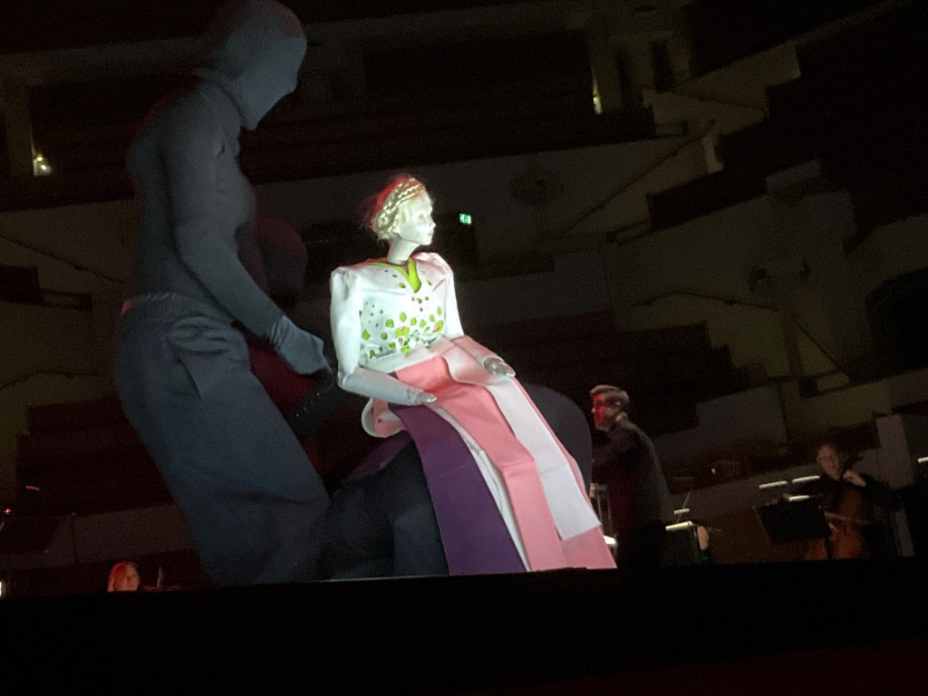 Ik zat op nog geen drie meter afstand van de Isolde-pop, en het is verbijsterend hoeveel uitdrukkingskracht Ulrike Quades poppen hebben, zowel in gezichtsexpressie als in lichaamshouding. De twee Tristan en Isolde poppen blijven bijna het hele eerste bedrijf ver van elkaar, ook na het drinken van de fatale wijn, en de poppen drukken op een prachtige manier eerder schuchterheid ten aanzien van de nieuwe situatie uit dan passie. Maar ze vallen elkaar aan het eind van dit eerste deel toch innig in de armen, in een hartverscheurend slotbeeld.