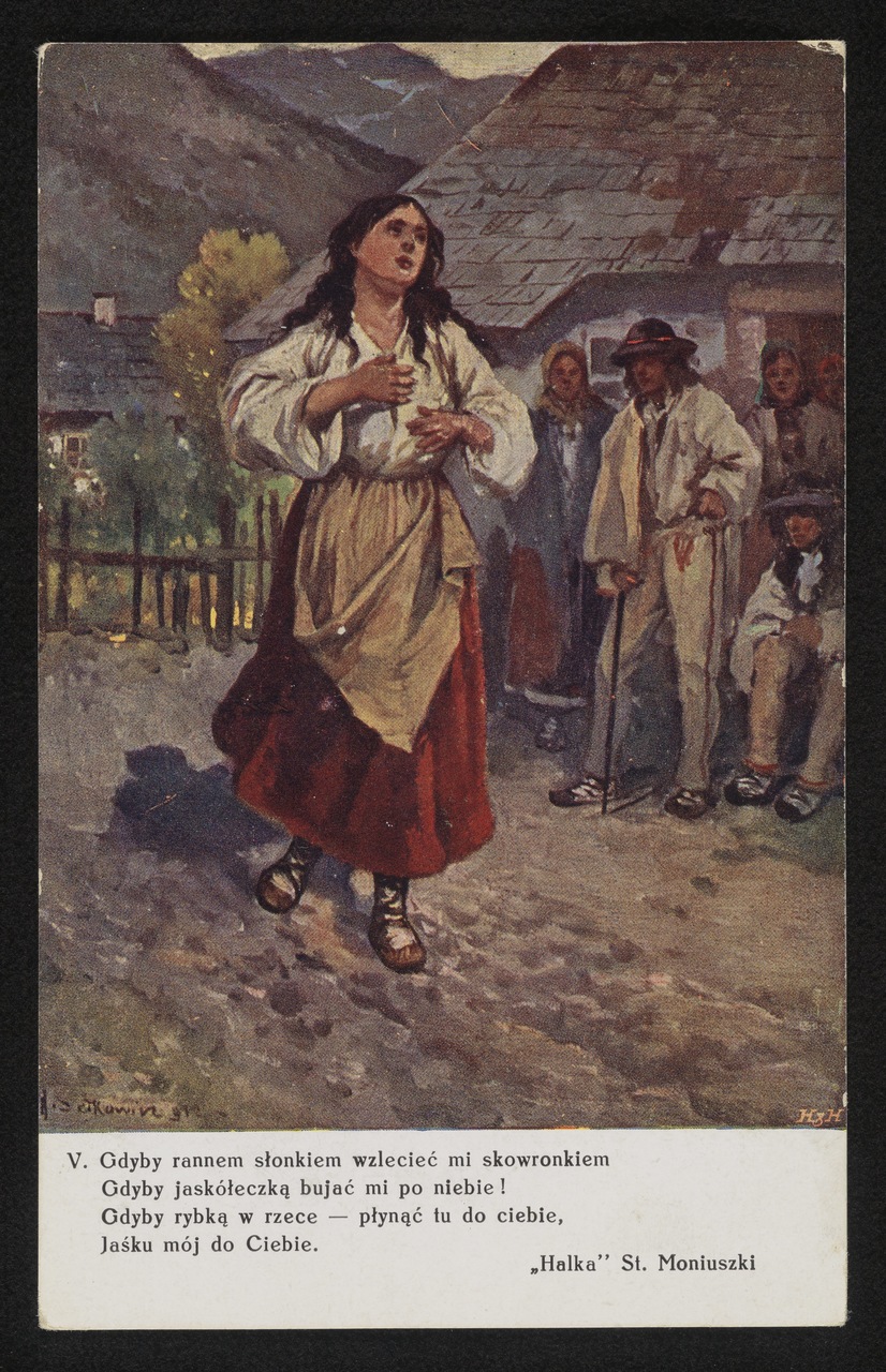 Halka is een weesmeisje dat door de landheer Janusz is opgemerkt toen hij haar dorp een keer bezocht. Hij voelde zich wat alleen en was direct van haar gecharmeerd. Zij op haar beurt liet onmiddellijk elke remming varen en probeerde zich direct aan hem te hechten, haar langverwachte grote liefde, haar ‘valk’. En natuurlijk werd ze zwanger van Janusz voordat deze weer een deur verder ging. Zij hoopt en verwacht dat haar grote liefde weer terug zal komen maar dorpsgenoot Jontek weet wel beter.