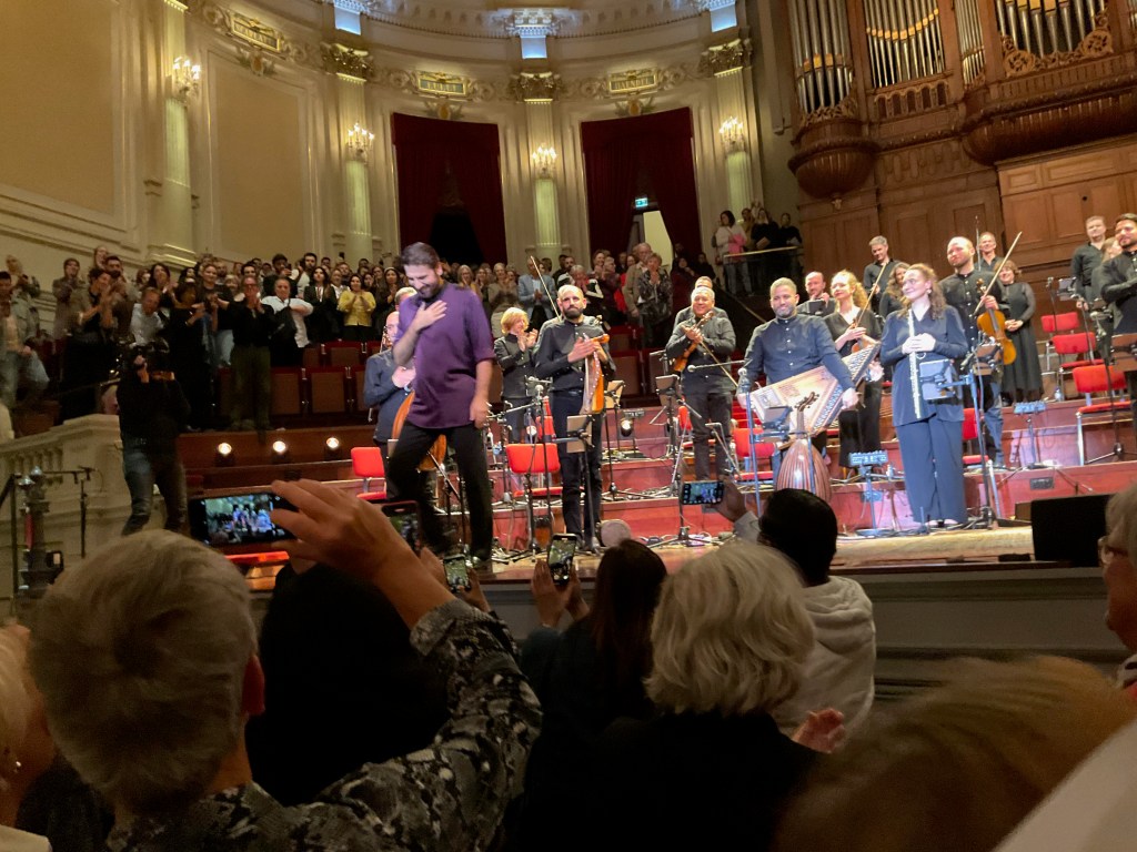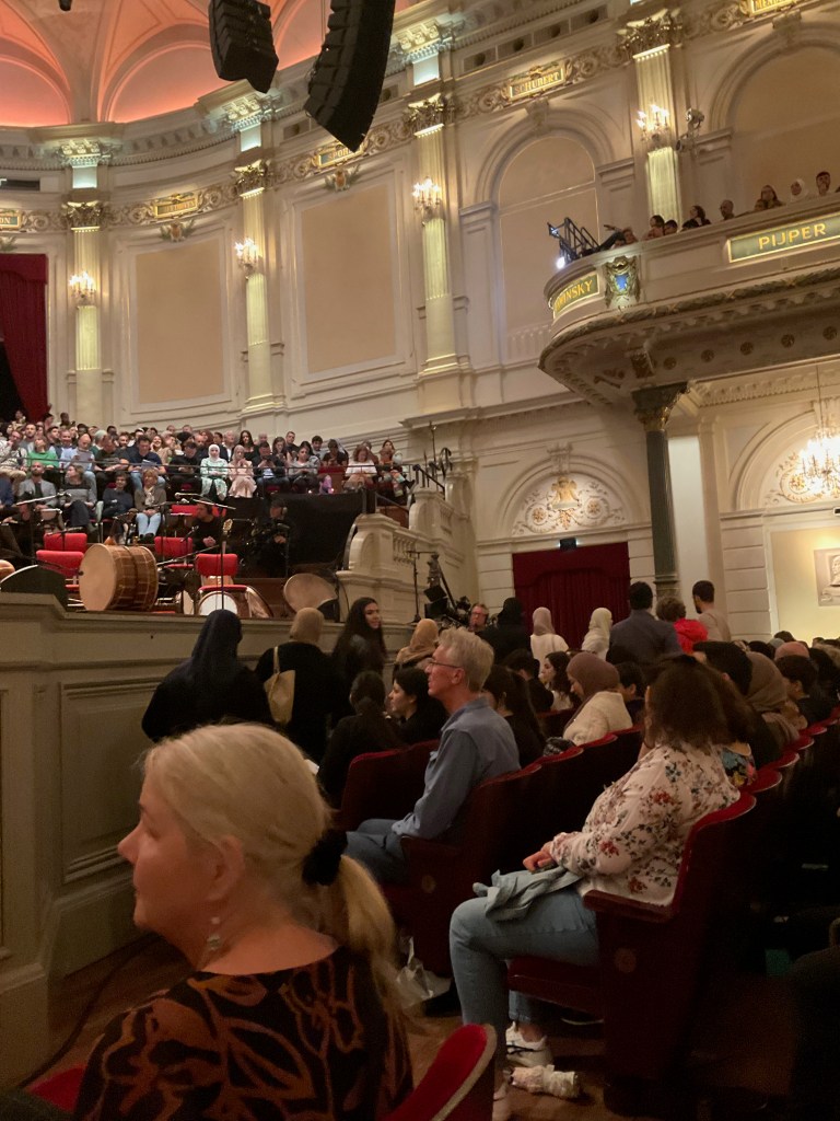 Om mij heen werden songs uit die tijd woord voor woord meegezongen. Misschien waren er zelden zoveel zowel ultiem hip als behoudend geklede jonge vrouwen met hoofddoekjes voor een concert in het Concertgebouw bijeen, waar het publiek verder ook bestond uit oudere ‘wit’ concertpubliek met een belangstelling voor Soefi- en/of wereldmuziek, het jonge witte Entree-publiek dat zich ook uitstekend vermaakte en velen met een Noord-Afrikaanse of West-Aziatische achtergrond die zich voor de gelegenheid uitermate stijlvolle kleding hadden aangetrokken.