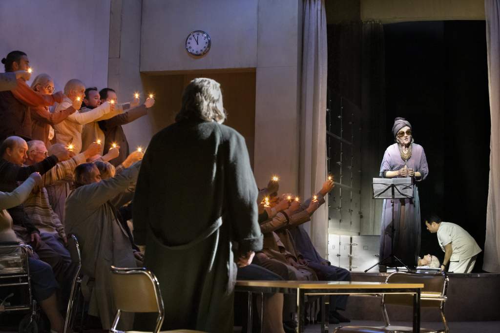 Het is niet ongebruikelijk om een verteller op te voeren die de twee delen aan elkaar praat door samen te vatten wat Roberto in Mainz is overkomen. Dat is een keuze en in deze productie werd geopteerd voor stil spel waarin we zien dat Roberto omringd wordt door mannen in stadse kledij en vervolgens in een hoerenkast terecht komt, zeer suggestief met veel rode belichting.