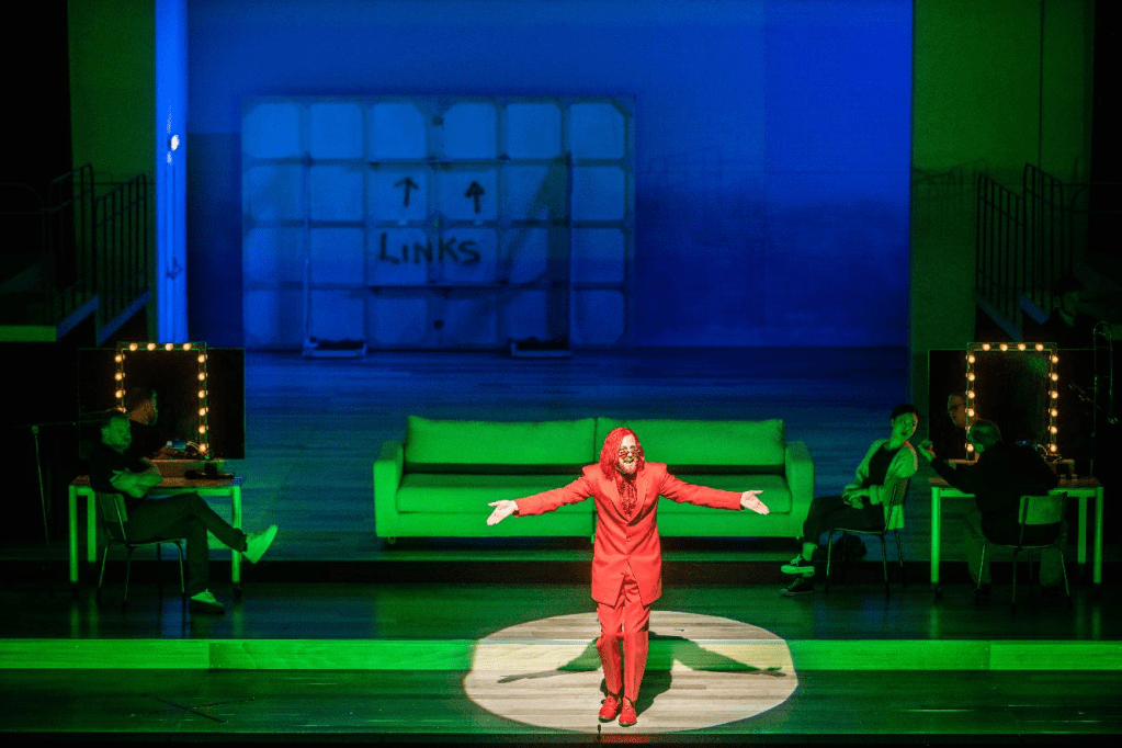 Deze nieuwe enscenering wordt ingeleid en tijdens de uitvoering becommentarieerd door een van top tot teen in het rood geklede ceremoniemeester, The Red One, vertolkt door de Amerikaanse acteur Odin Lund Biron, tot voor kort ook een ster in Serebrennikovs Gogol theater in Moskou en ook de hoofdrolspeler in Serebrennikovs nieuwe Tchaikovsky film.