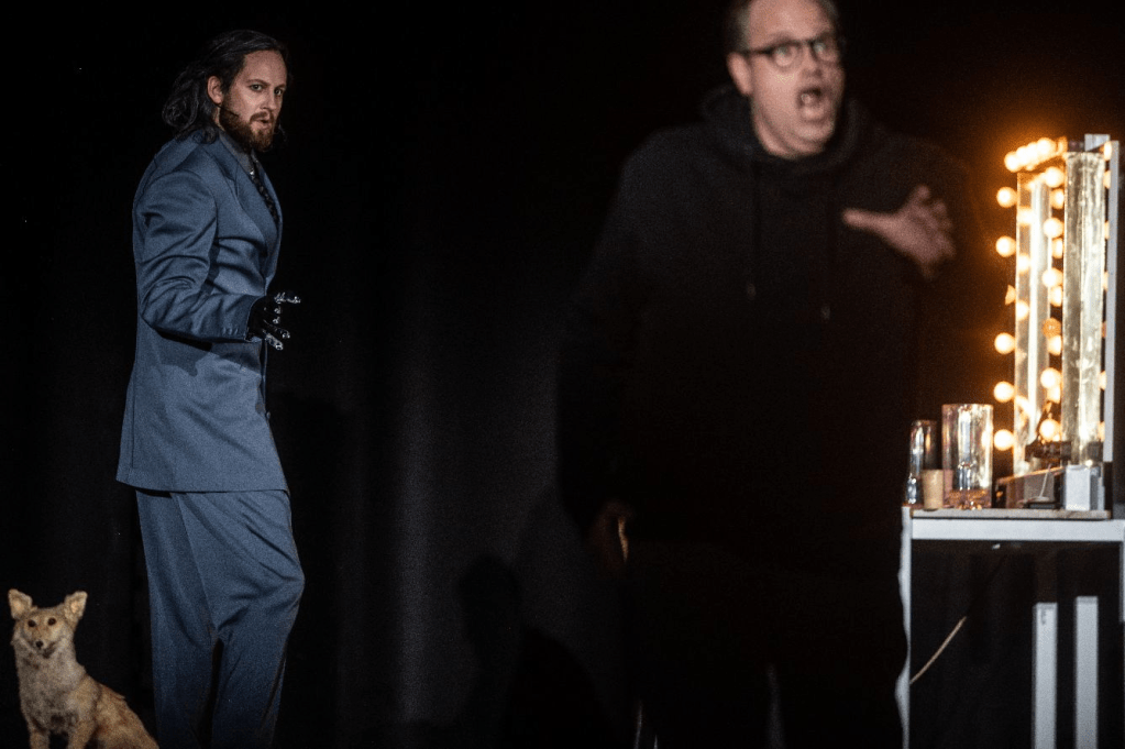 Odin Lund Biron als The Red One kreeg nog een extra rol toebedeeld. Op enkele momenten vertolkt hij songs uit The Black Rider: The Casting of the Magic Bullets, Robert Wilsons op Der Freischütz gebaseerde musical met muziek van Tom Waits uit 1990, die hier ooit ook in het Holland Festival te zien was. In plaats van Waits’ gruizige stemgeluid bleek Biron een fraaie falset aan de dag te leggen.V