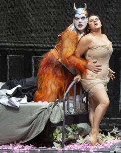 Martin Winkler steelt bij wijlen de show als Jupiter, vooral in de scène dat hij als vlieg in Euridice’s kamer binnendringt en bijna door haar wordt overweldigd. Zozeer heeft Pluton haar al die tijd verwaarloosd, any man will do, even a big fly with golden wings. Euridice wordt vertolkt door de coloratuursopraan Kathryn Lewek die de rol werkelijk alles geeft wat ze eruit kan halen. Kosky komt met een sterk ‘seksualisierte’ bewerking van een op zich al vrij losbollige operette en de dik opgelegde erotiek komt vooral voor rekening van de prima donna. Lewek weet daar goed raad mee en heeft er duidelijk lol in.