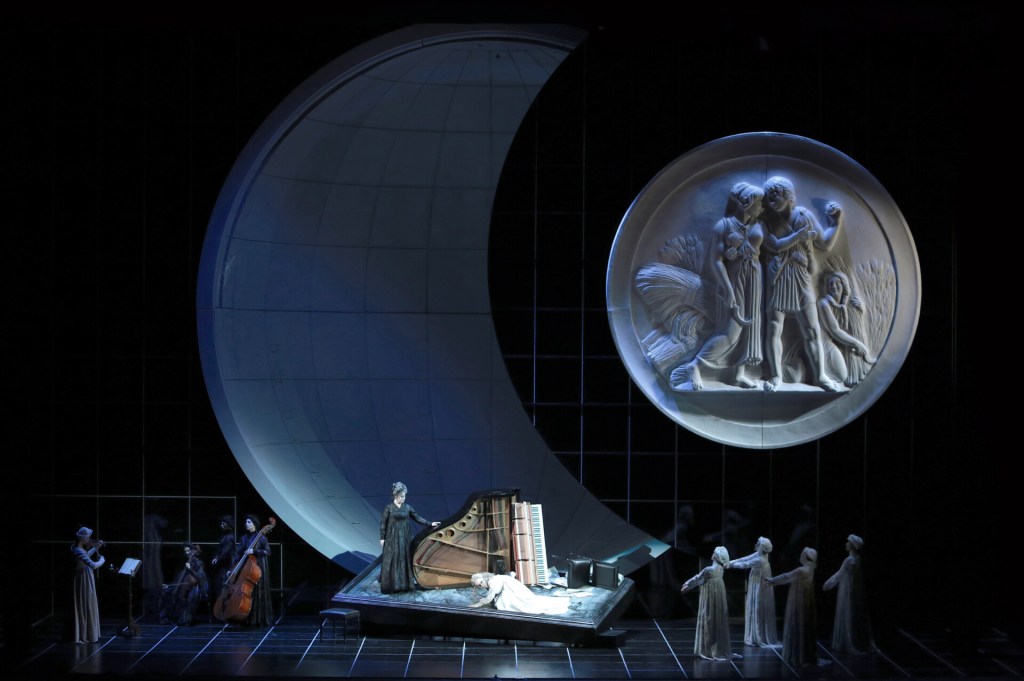 Alle handelingen spelen zich af op een draaitoneel, ontworpen door Henrik Ahr. In tegenstelling tot de kostbare zware kolos van Tcherniakov in ‘De Maagd van Orléans’ had het hier wel een duidelijke functie. De verdeling in meerdere compartimenten maakte snelle scènewisselingen mogelijk en dankzij de Ikea uitvoering zal het ook flink goedkoper zijn uitgepakt.